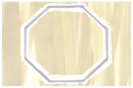 This series entitled "Border" consists of simple geometric shapes surrounded by colorful backgrounds where watercolor and vinyl paint overlap.